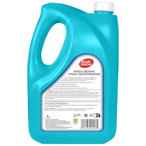 Simple Solution Patio & Decking Pet Stain and Odour Remover | Enzymatic Cleaner with Pro Bacteria Cleaning Power – 4 Litres