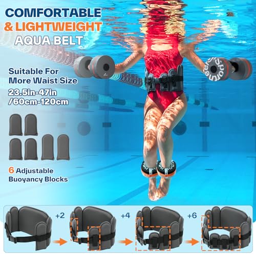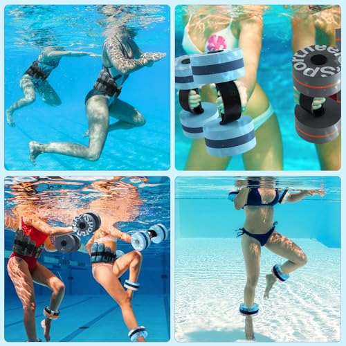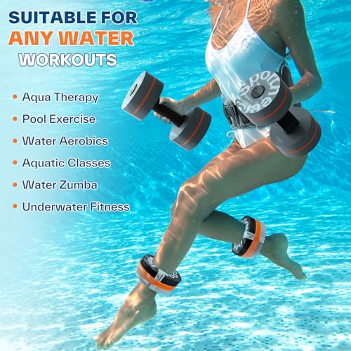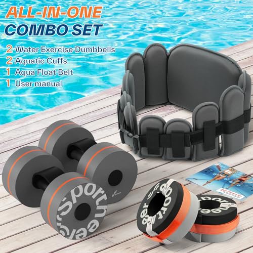 Sportneer Water Aerobic Pool Exercise Equipment Water Training Combo Set Includes High Density Water Dumbbell Bath Belt Water Ankle Weights for Aqua Therapy Pool Fitness Water Exercises
