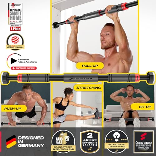 Sportstech KS260 / KS270 Pull-Up Bar with Gear-Lock Function, Safe without Screws in the Door Frame, Indoor Pull Up Bar Individually Adjustable, German Quality Brand