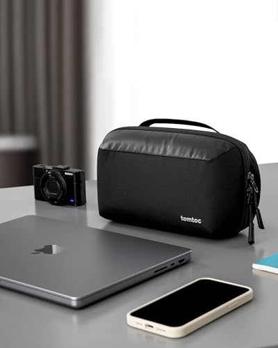 tomtoc Cable Bag Accessory Bag, Electronics Accessories Cable Organiser Bag Tech Pouch, Travel Cable Bag for Charging Cable, Hard Drive, MacBook Adapter, Charger, Power Bank, SD Cards, Black