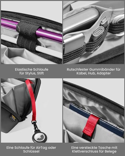 SMART ORGANIZATION This bag options sensible division and highly effective storage options to fulfill your intensive storage wants. There are a number of compartments for MacBook chargers, cables, adapters, mouse, USB, hub, SSD, energy financial institution, exhausting drive and extra. A movable card board gives house for SD, CF, TF, SIM playing cards.