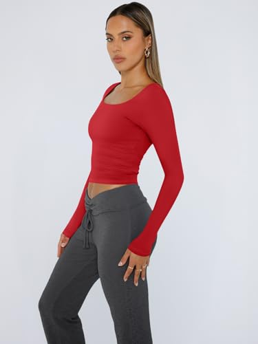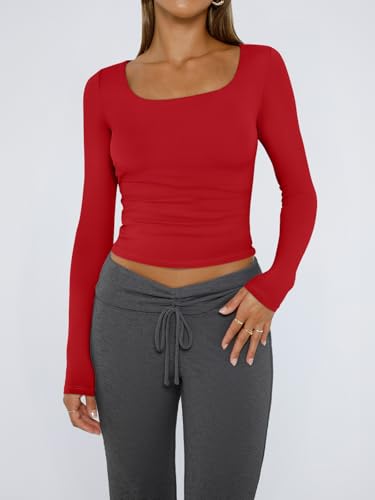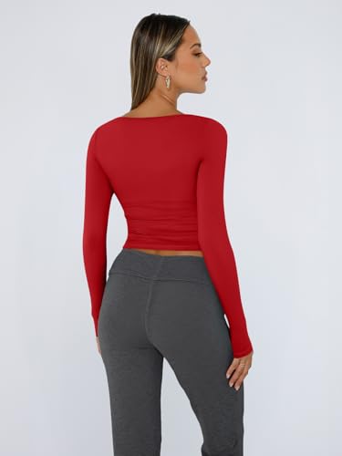 Trendy Queen Women Long Sleeve Crop Top Double Layer Slim Fit Y2K Winter Clothes 2024