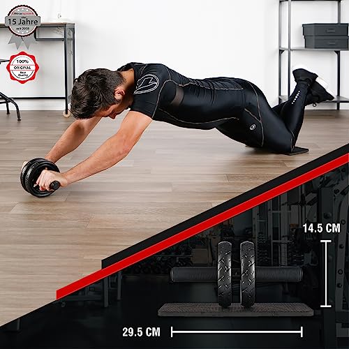 The non-slip wheel and grip inserts and the gentle knee pad of the compact abdominal trainer guarantee safe training – even on smooth floors.