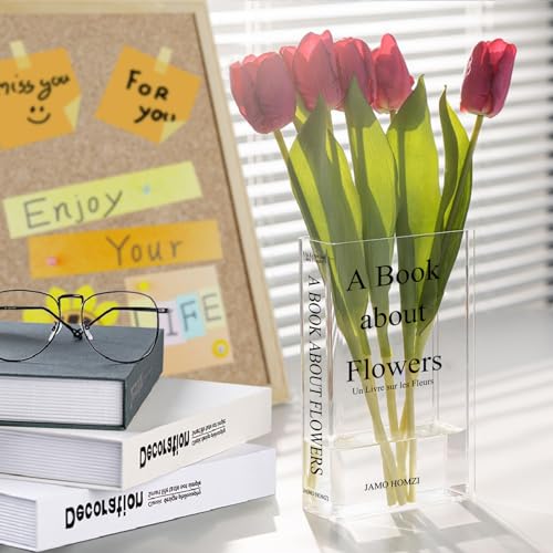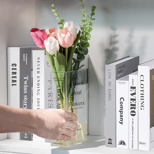 Vases Book Vase, White Book Vase, Transparent Book Vase, Acrylic Book Vase, Transparent Vase for Flowers, Aesthetic Decoration, Unique Accent for Home/Bedroom/Office (Black)