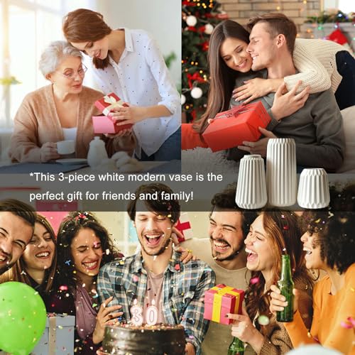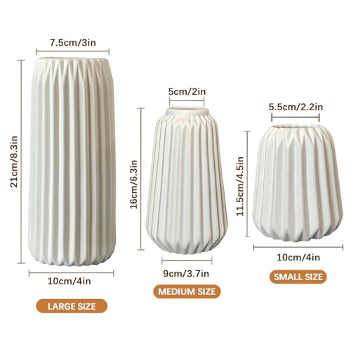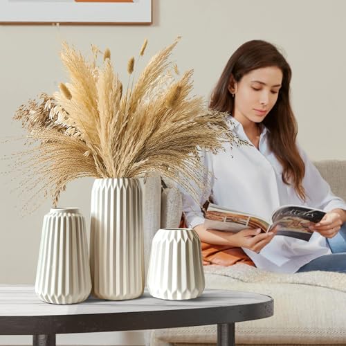 Vasen Deko -WeiÃe Keramik Vase Satz von 3 für Moderne Home Decor,Deco Matte Vasen für Pampasgras,Vasen Deko Aesthetic Neutral Boho Skandinavische Deko Vase (A WeiÃ)
