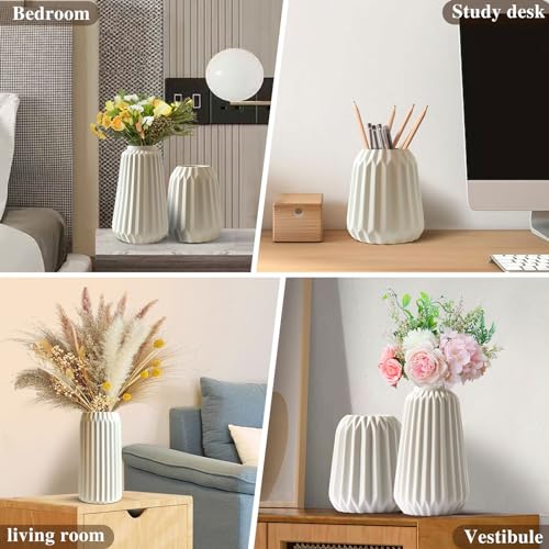 Multi-purpose ceramic vases with decorative aesthetic: vase for a variety of styles of scenes, can be used both wet and dry, add water with tulip rose flowers in the bedroom, living room, kitchen, office desk will make your house look vibrant and add a different colour. It can also be used with pampas grass dried flowers and eucalyptus leaves for wedding parties, hotels and shops, which is farmhouse. , boho decoration and decoration Modern style.