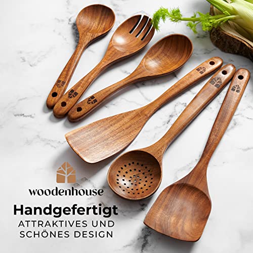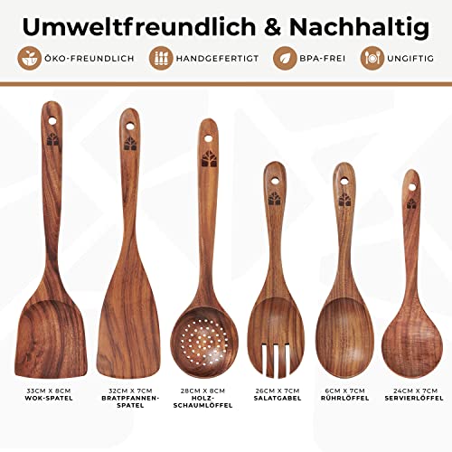 Wooden Cooking Cutlery Set, Spatula, Cooking Spoon, Mixing Spoon, Serving Spoon, Salad Fork, Slotted Spoon – 6-Piece Set – Cookware Set Kitchen Set Kitchen Accessories – High Quality & Sustainable