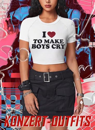 Y2k Crop Tops Women Girls Summer White Tee Shirts Short Sleeve Crew Neck Top Basic Slim Fit T-Shirt Gothic Y2k Clothes Punk Rock Rave Techno Outfit Disco Party Concert Clothing
